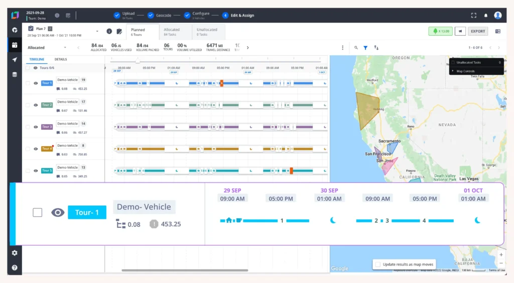Investing in a route planning software that automatically handles real-world constraints—such as order details, fleet type, vehicle capacity, driver preferences, customer locations, and time slots—can drastically improve mid-mile efficiency. It ensures that Service Level Agreements (SLA) are met, repeat trips are minimized, and a single driver can fulfill multiple orders. This optimization helps cut down travel distances, reduce the number of visits per truck and driver, and enhance overall cost efficiency.