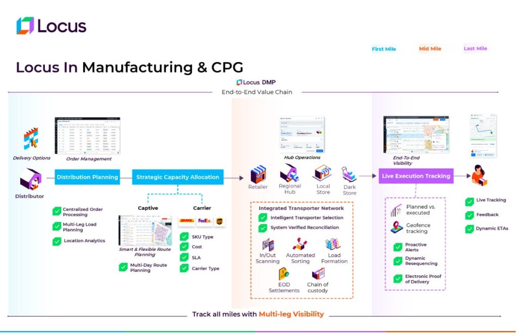 This approach also aligns with the current needs of manufacturing logistics, where the focus is on improving existing systems to better serve the end goal of timely delivery. By adapting strategies from the world of last-mile logistics, and utilizing Locus’ innovative solutions across all miles, industries can maintain a competitive edge and drive growth in an ever-evolving marketplace.
