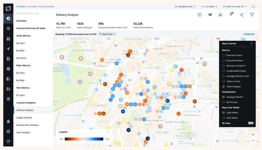Locus’s platform assigns orders to suitable pallets or trucks, optimizing for volume and cost efficiency. This improves vehicle capacity utilization and reduces empty miles.