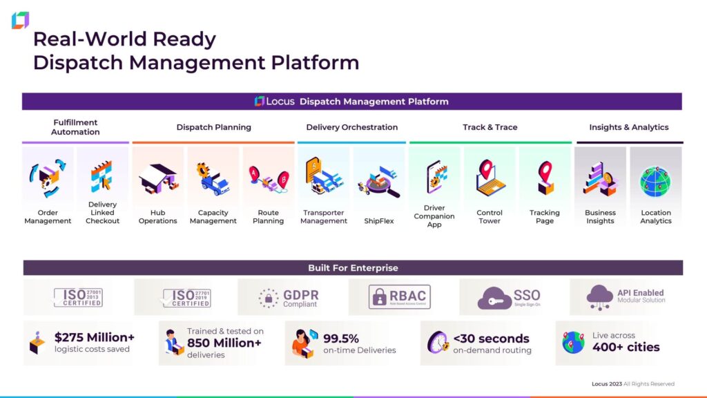 Locus isn’t just any tech platform; it’s a real-world ready dispatch management and customer experience powerhouse that empowers businesses to conquer the complexities of middle-mile logistics efficiently. With critical offerings like ShipFlex, route planning software, real-time tracking, and a robust control tower, Locus becomes the secret sauce that ensures the gears of middle-mile operations turn smoothly and seamlessly.